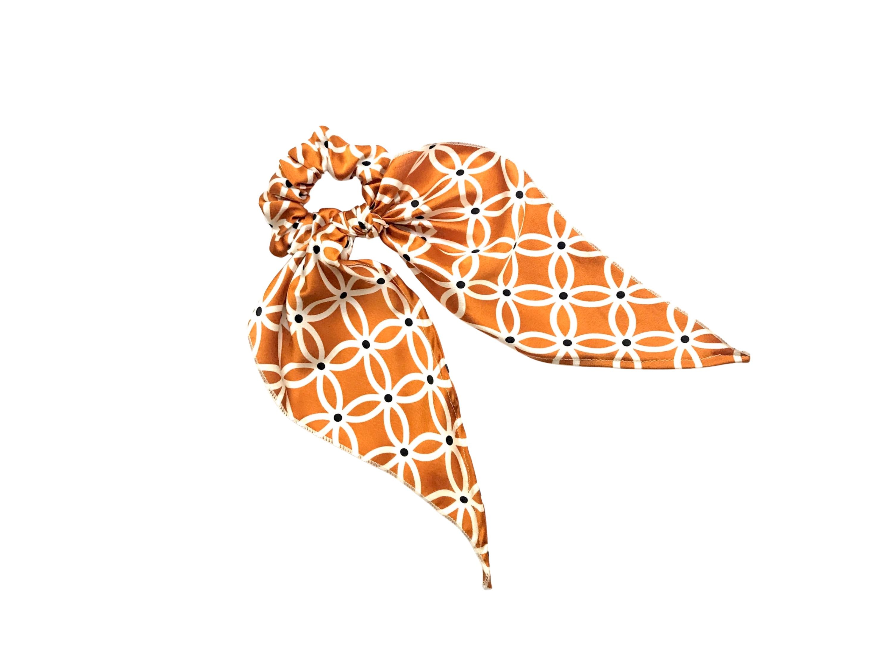 Wear it as a statement ponytail accessory, a simple scrunchie, or detach the scarf and tie it as a petite neck scarf for an extra touch of charm.