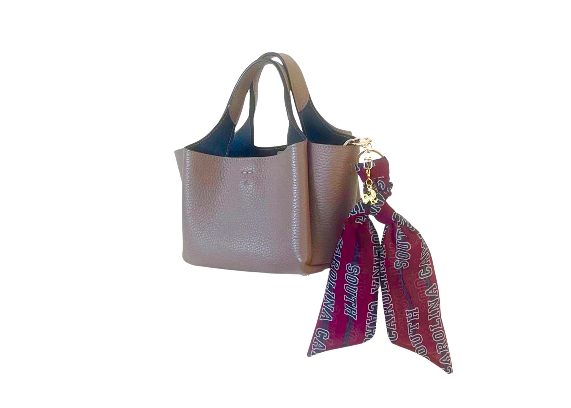 Add this cute South Carolina Gamecocks' scarf keychain to your purse. A cute feisty bird charm representing "Cocky" is attached to show your team spirit. Spurs Up!
