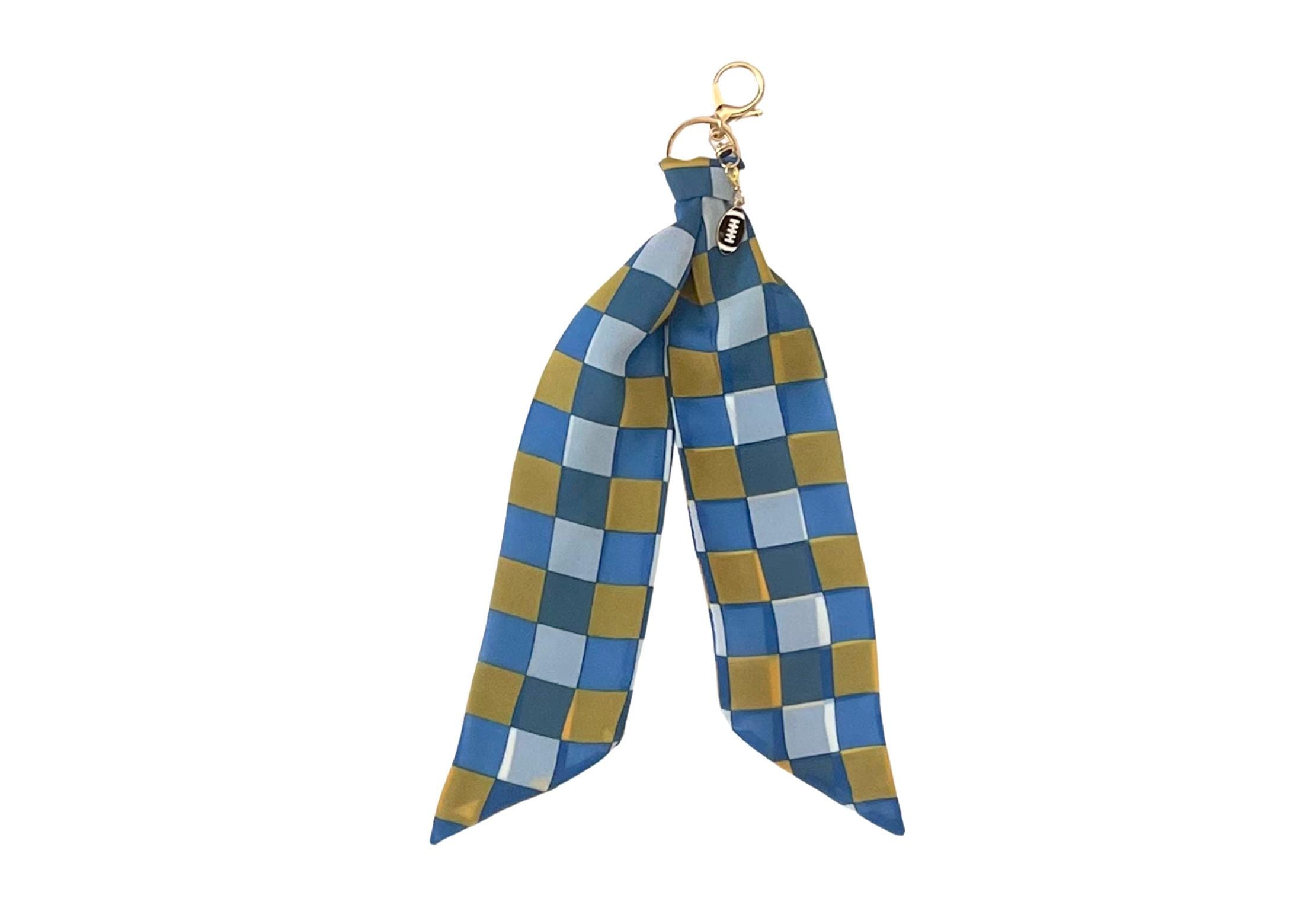 The scarf is attached to a swivel clip clasp. You will be able to remove this scarf keychain easily from your handbag by pressing on the small nub located on the clasp's side.