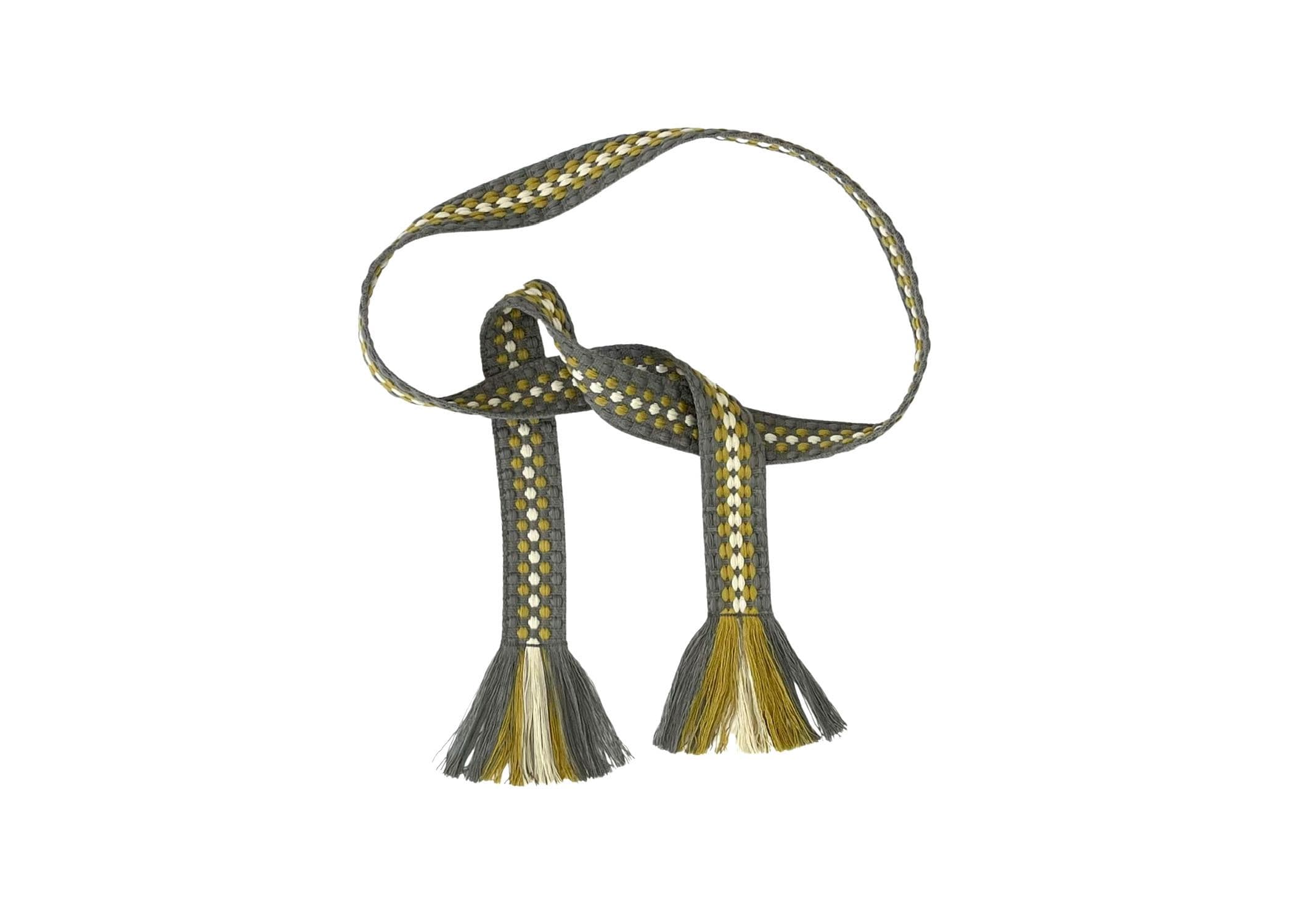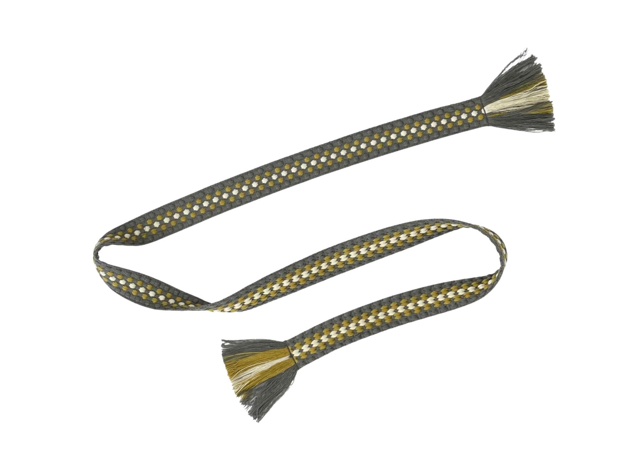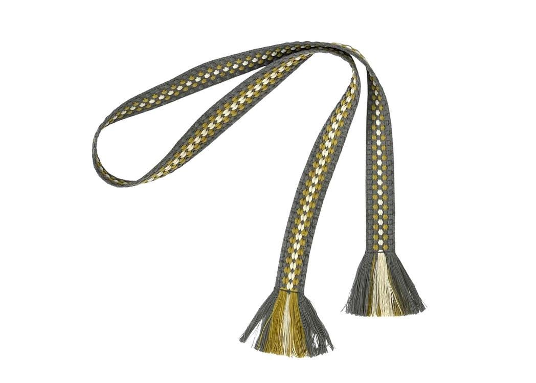 This woven wrap belt is a woven striped pattern in sage, chartreuse green and cream.