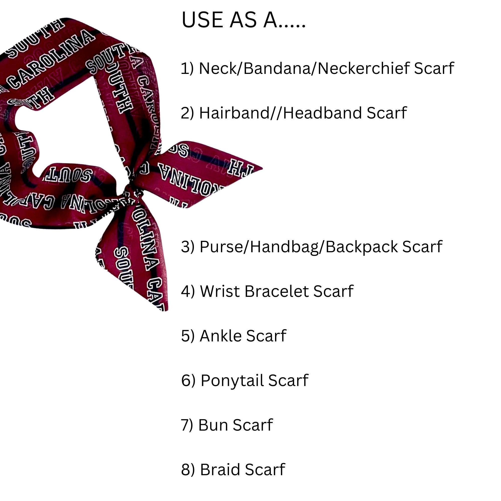 1) "SOUTH CAROLINA" is made out of a lightweight, easy to tie chiffon fabric.