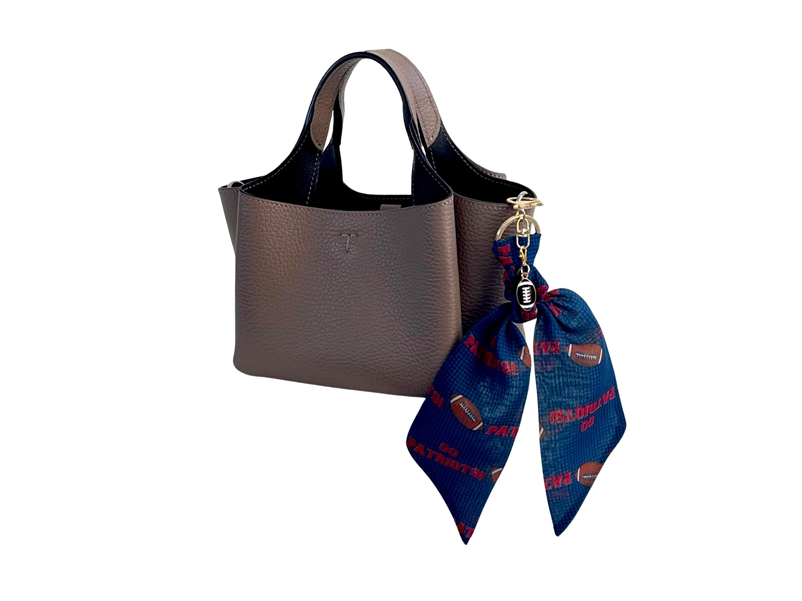 Add this cute New England Patriots' scarf keychain with football charm to your purse.