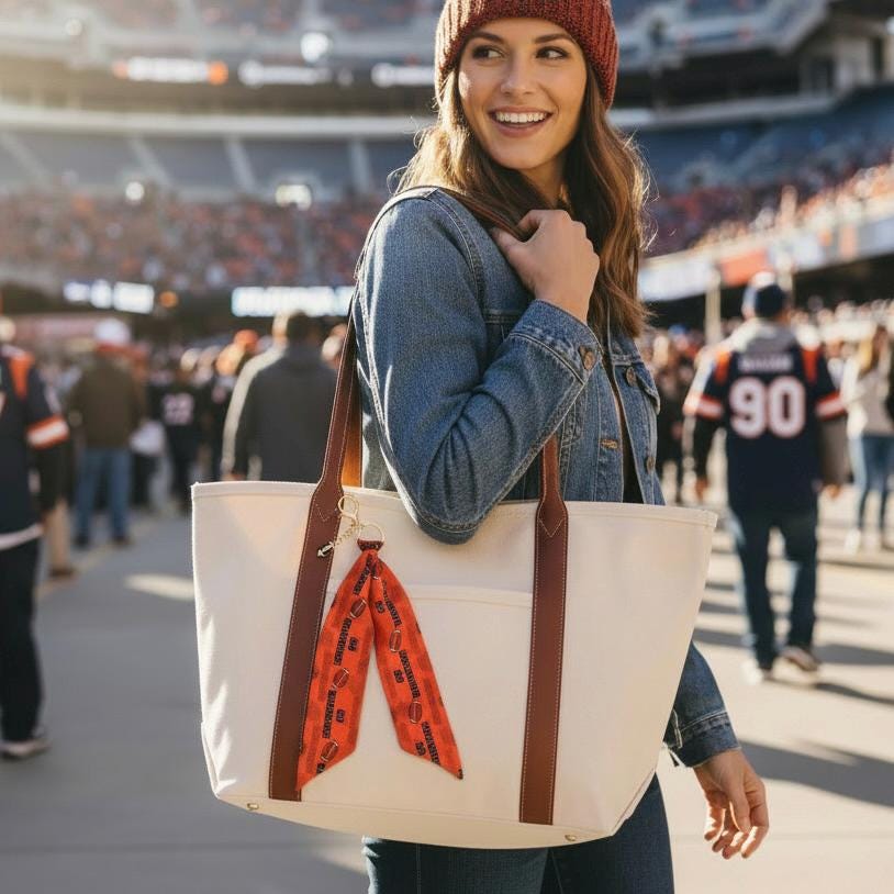Add this cute Denver Broncos' scarf keychain with football charm to your purse.