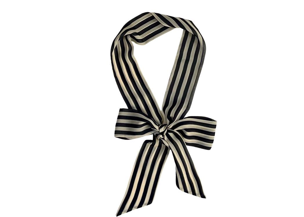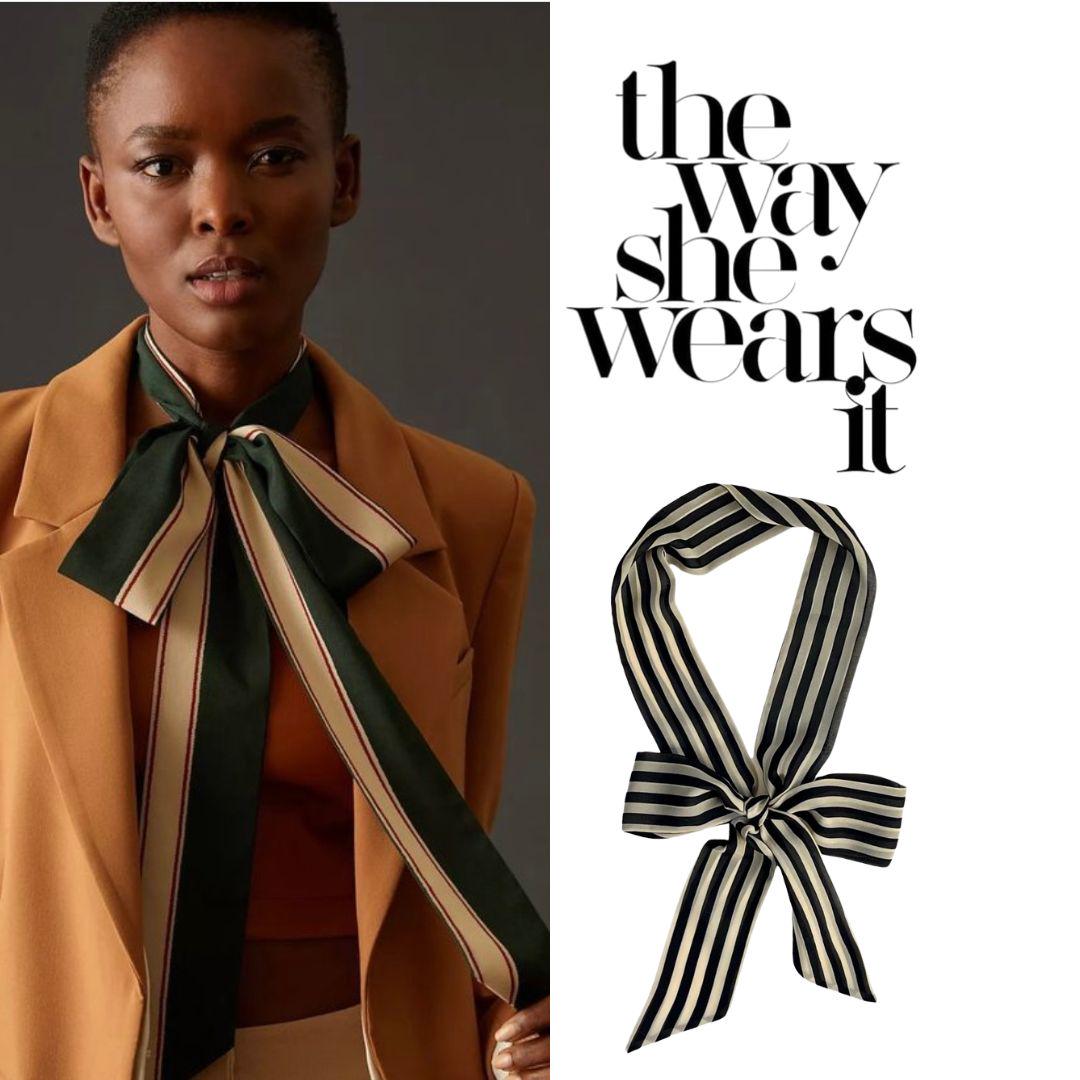 Use as a long loose neck tie scarf. Tie in a soft bow or could be tied tightly under a shirt collar.