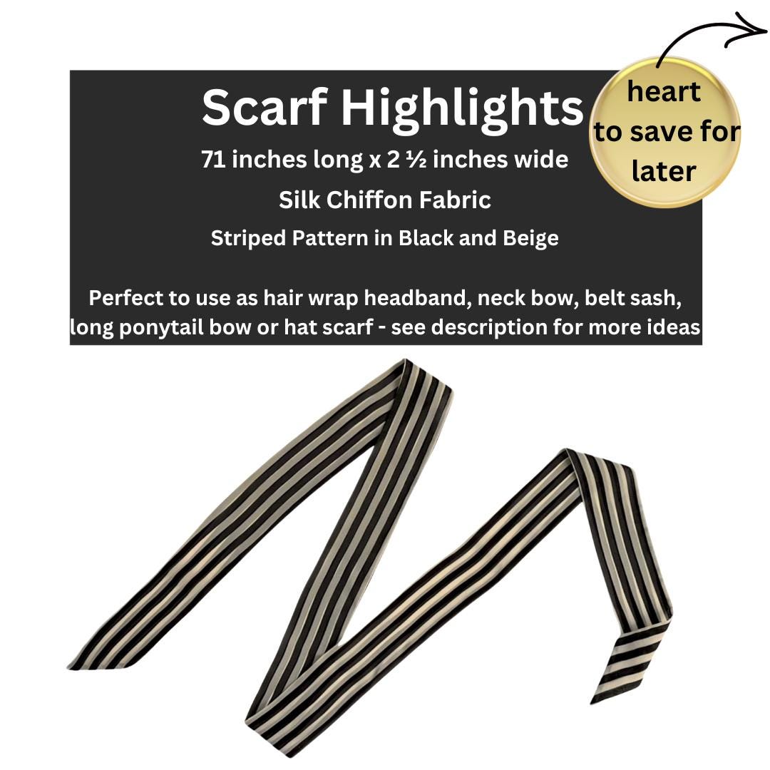Long enough to use as a hairband scarf... tie as shown in Photo 6. Scarf's ends/ties will hang extra long. Approximately 20 inches after knot is tied.