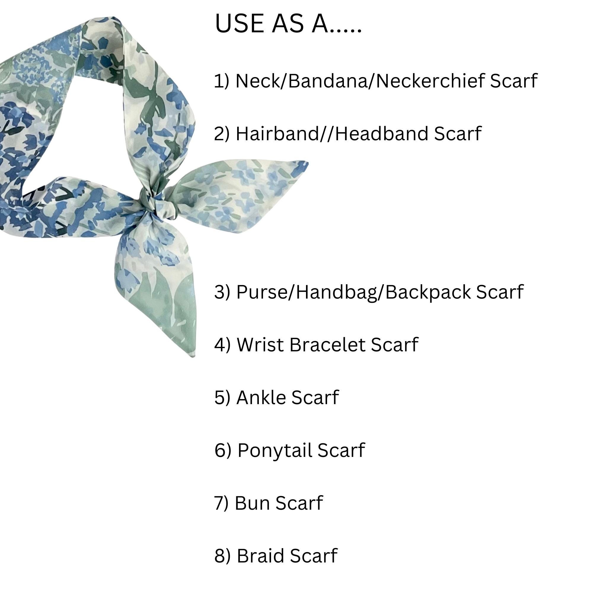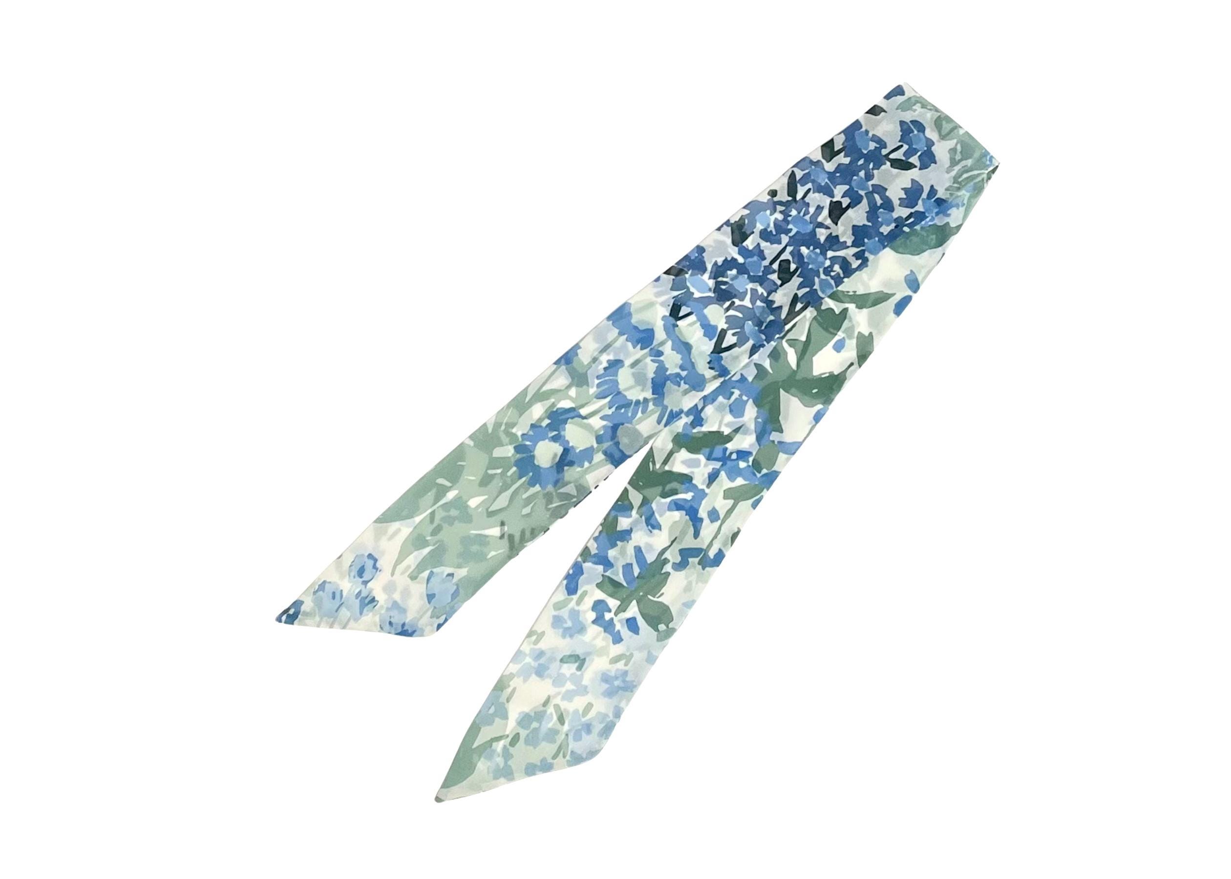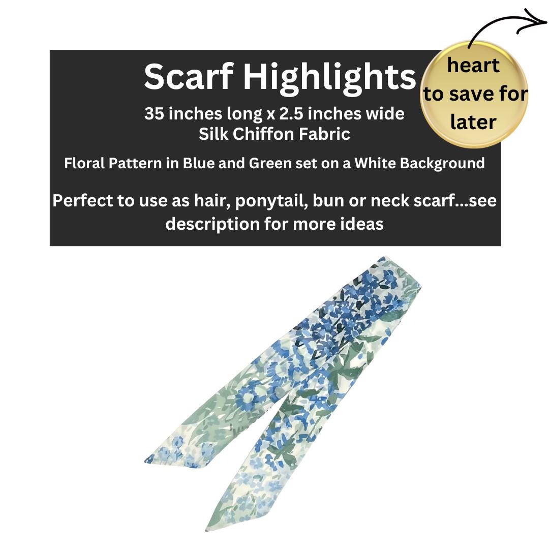 Add a soft, feminine touch to your everyday style with this charming skinny scarf. Delicate blue flowers with fresh green stems are scattered across a white background, creating a light and graceful look that pairs effortlessly with any outfit.