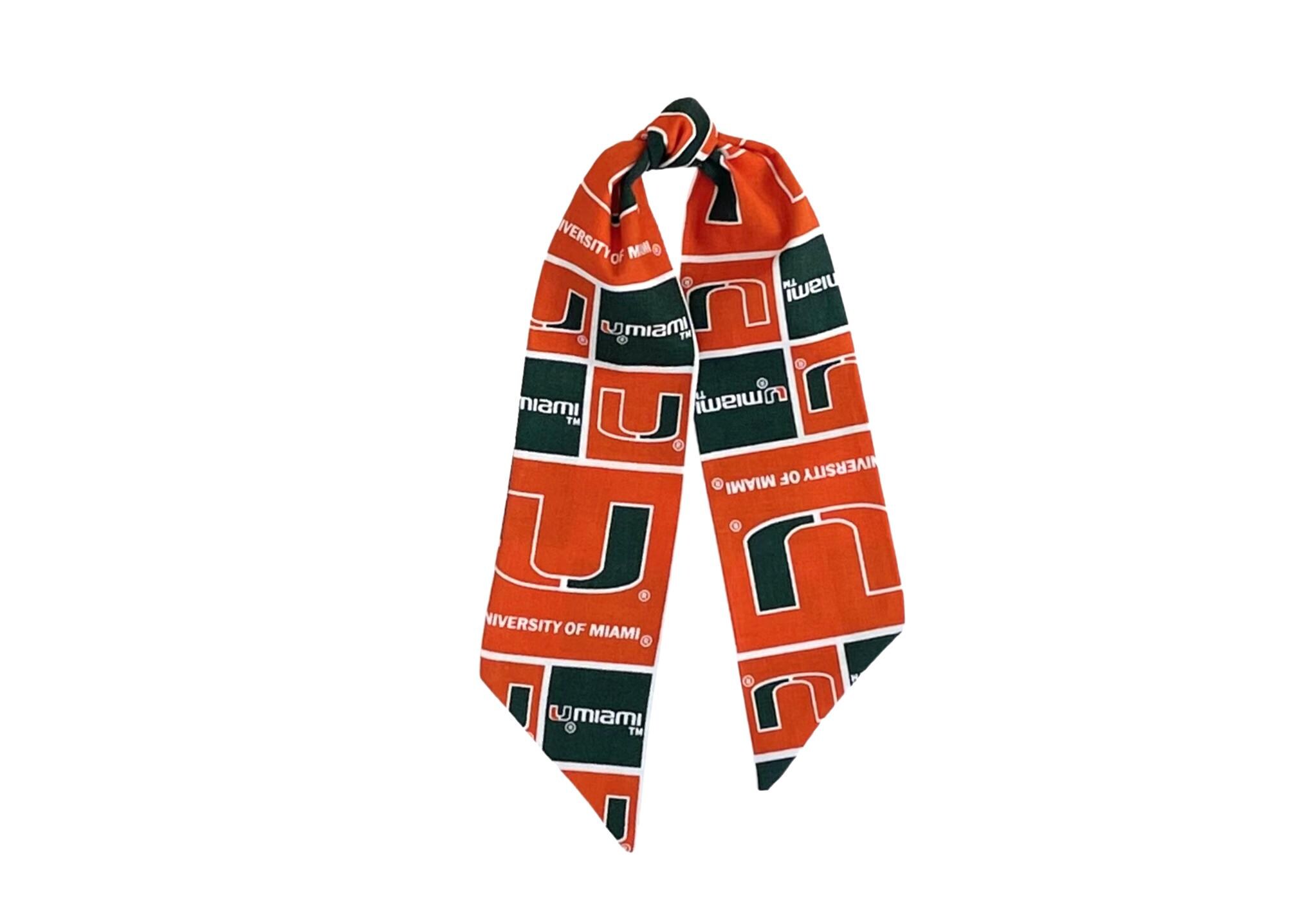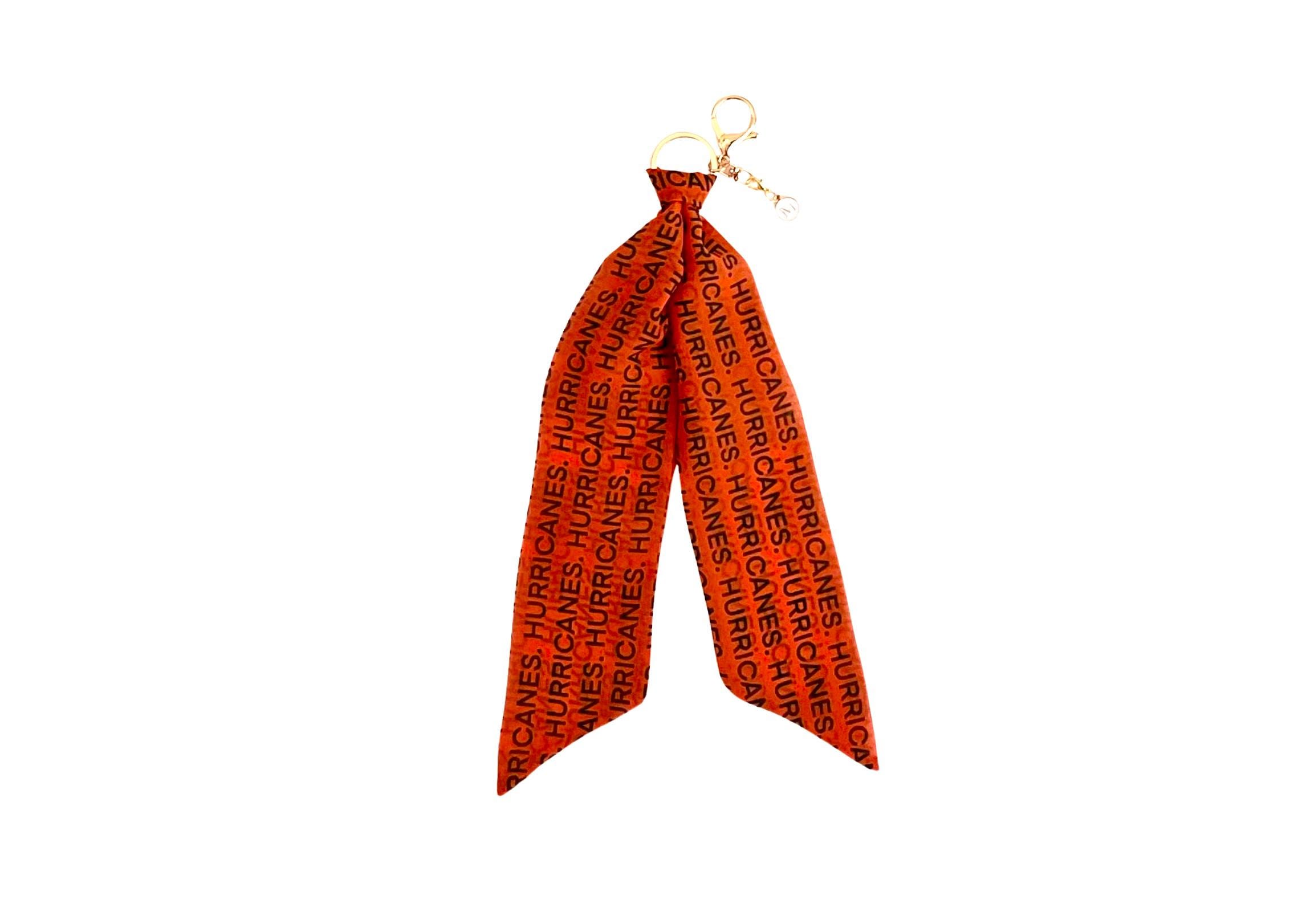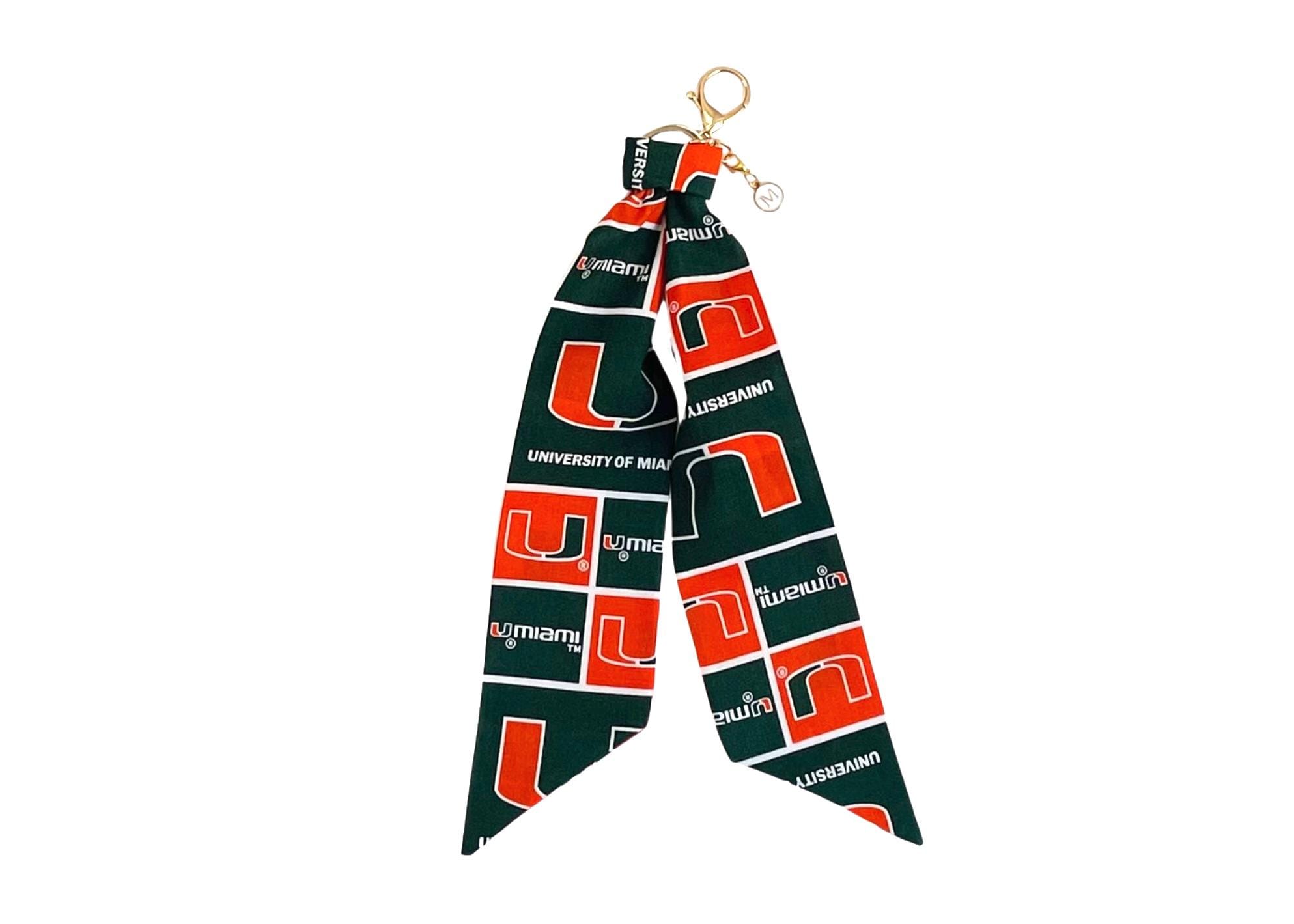 Add this cute University of Miami scarf keychain to your purse. A cute letter "M" charm representing "Maimi" is attached to show your team spirit.