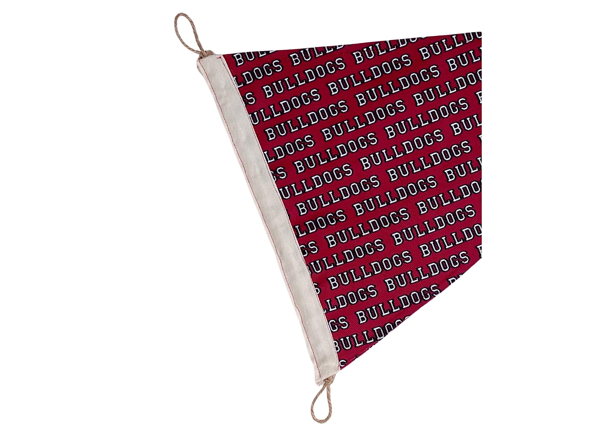 Featuring a striking red background with repeating “Bulldogs” text, this triangular flag is perfect for adding a spirited touch to any space.