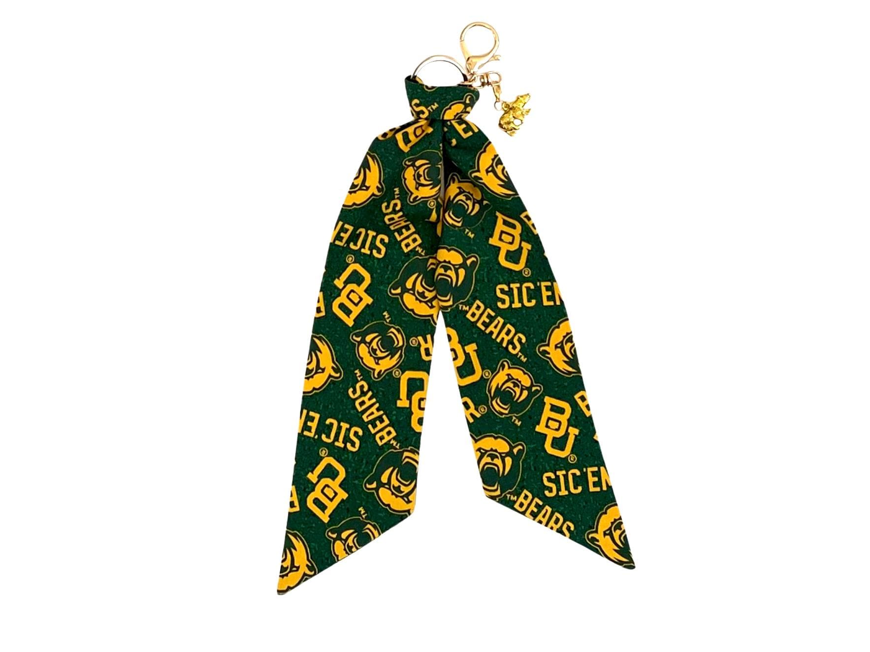 Add this cute Baylor University scarf keychain to your purse. A Bear charm is attached to show your team spirit.